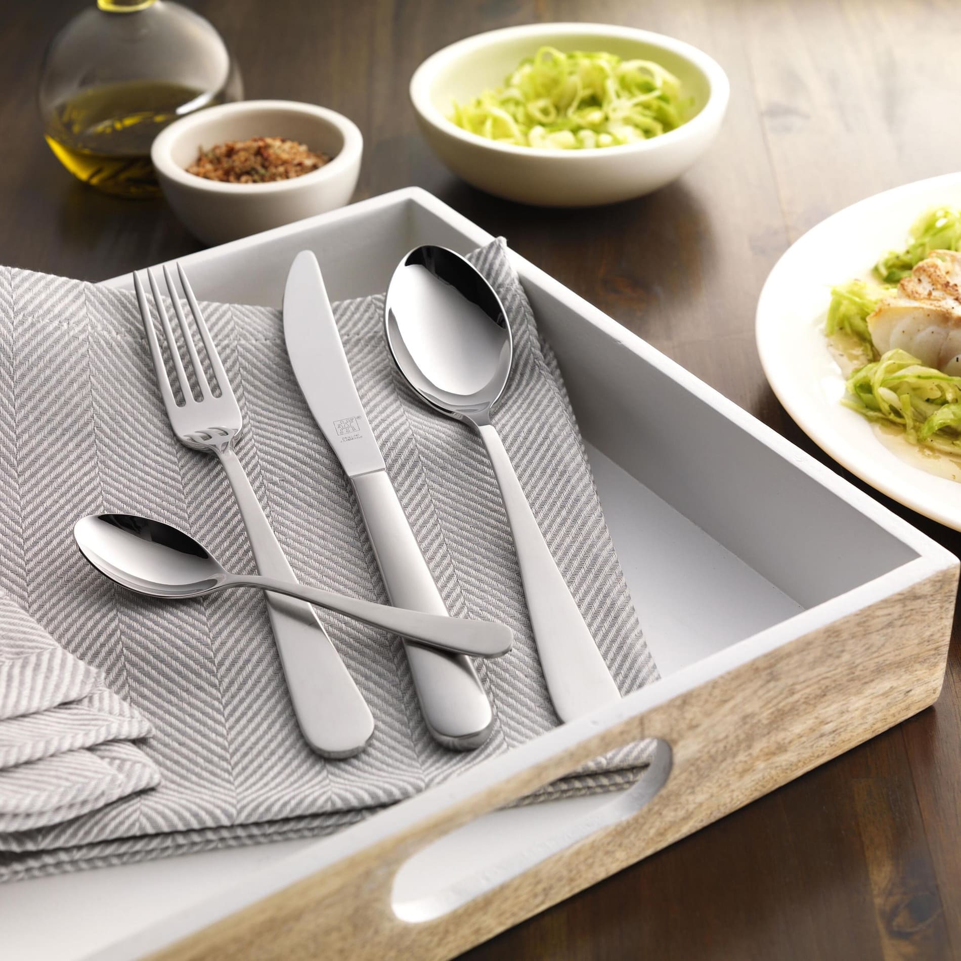 Благодаря первоклассному материалу приборы можно мыть в посудомоечной машине без вреда для внешнего вида. Набор отличается высокой износостойкостью и поставляется в фирменной картонной коробке ZWILLING.