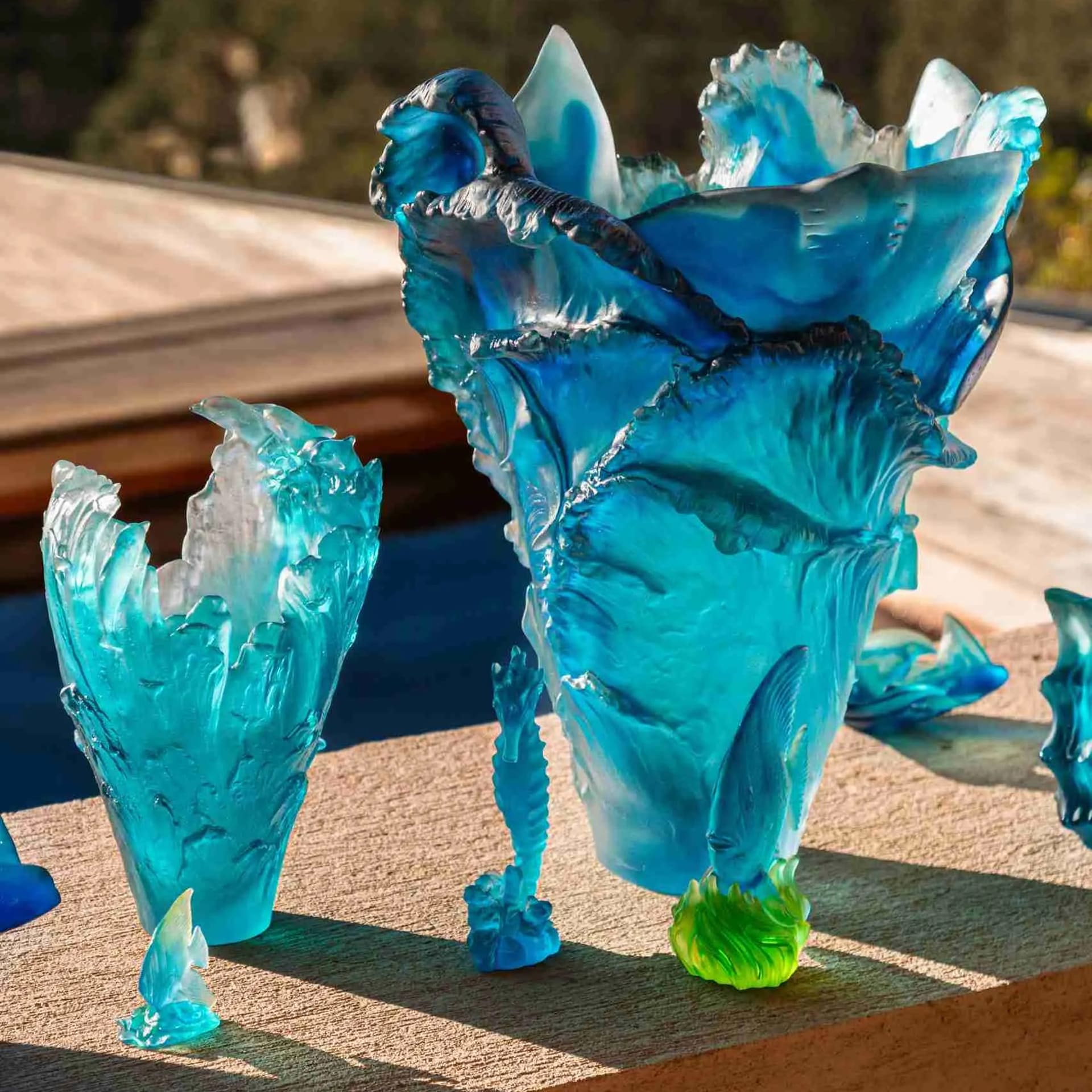 Коллекция Maya, вдохновленная бирюзовыми водами Карибского моря, продолжает наследие морских мотивов Дома Daum, начатое в 1900-х годах. Коллекция сочетает в себе древнюю технику pâte de cristal (хрустальная паста) с современной инновацией. Maya — это приглашение к путешествию, погружение в мир, где природная красота становится вечной благодаря руке мастера.