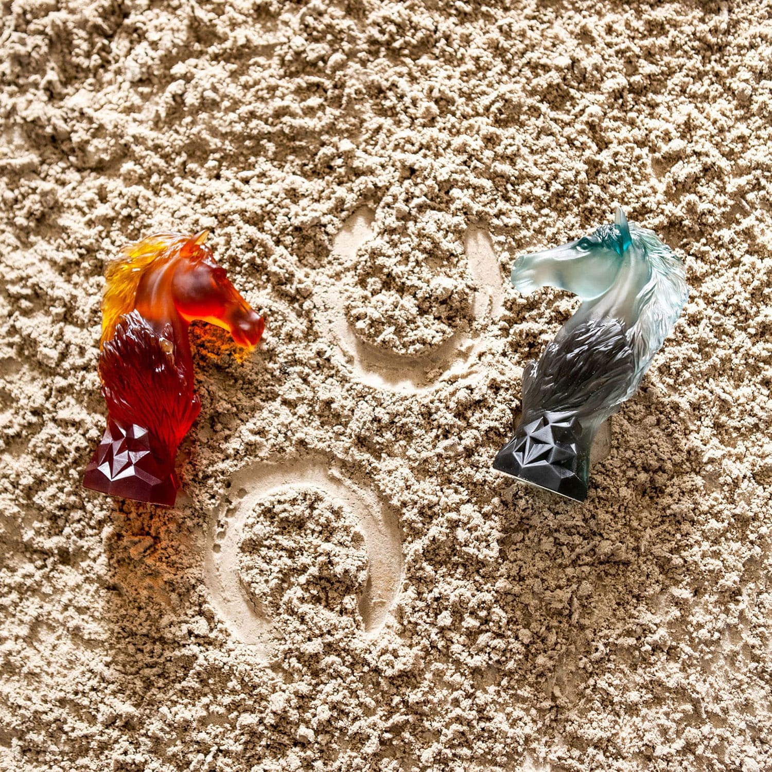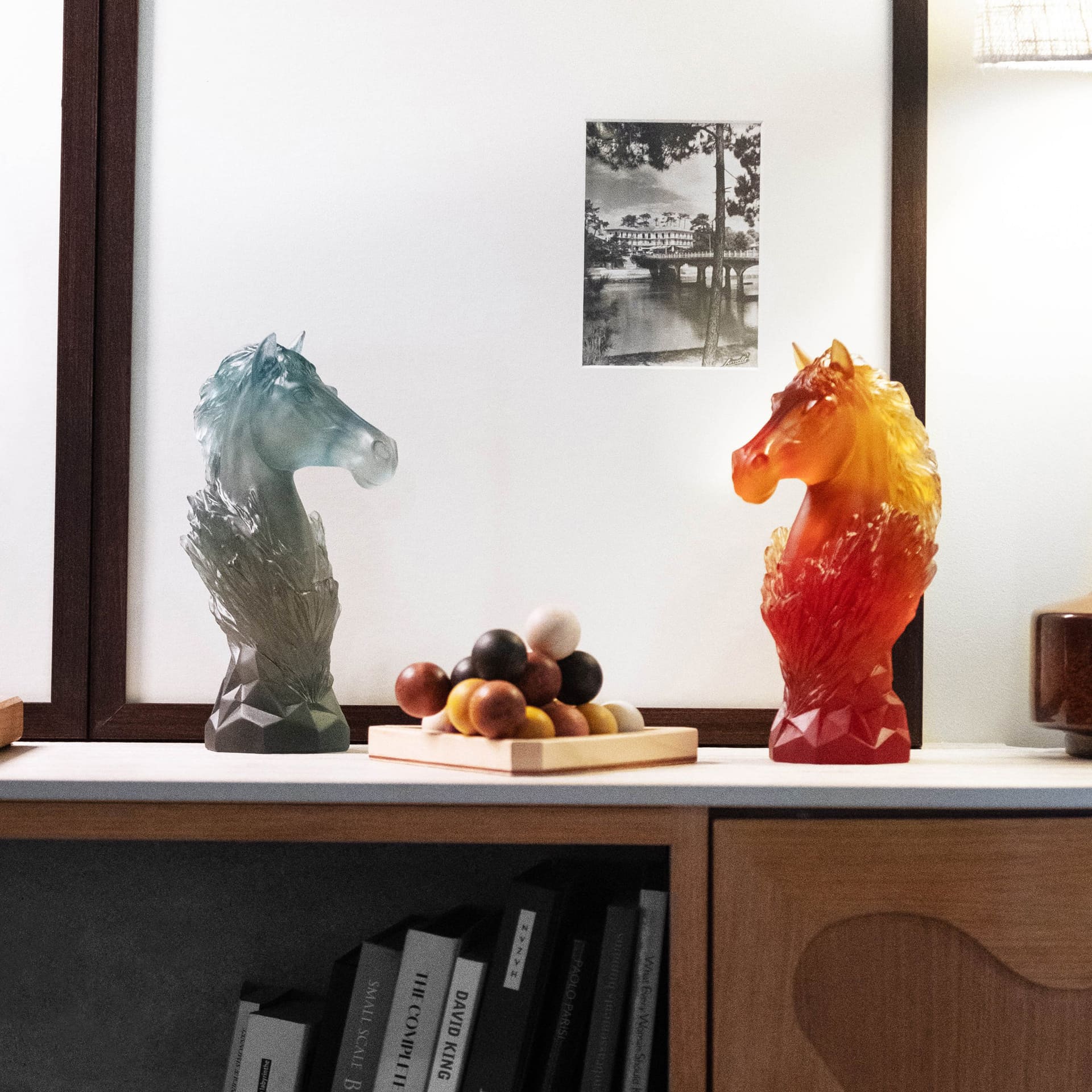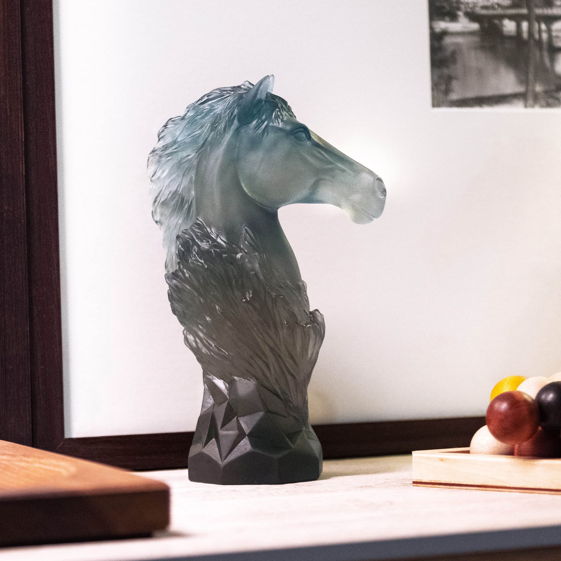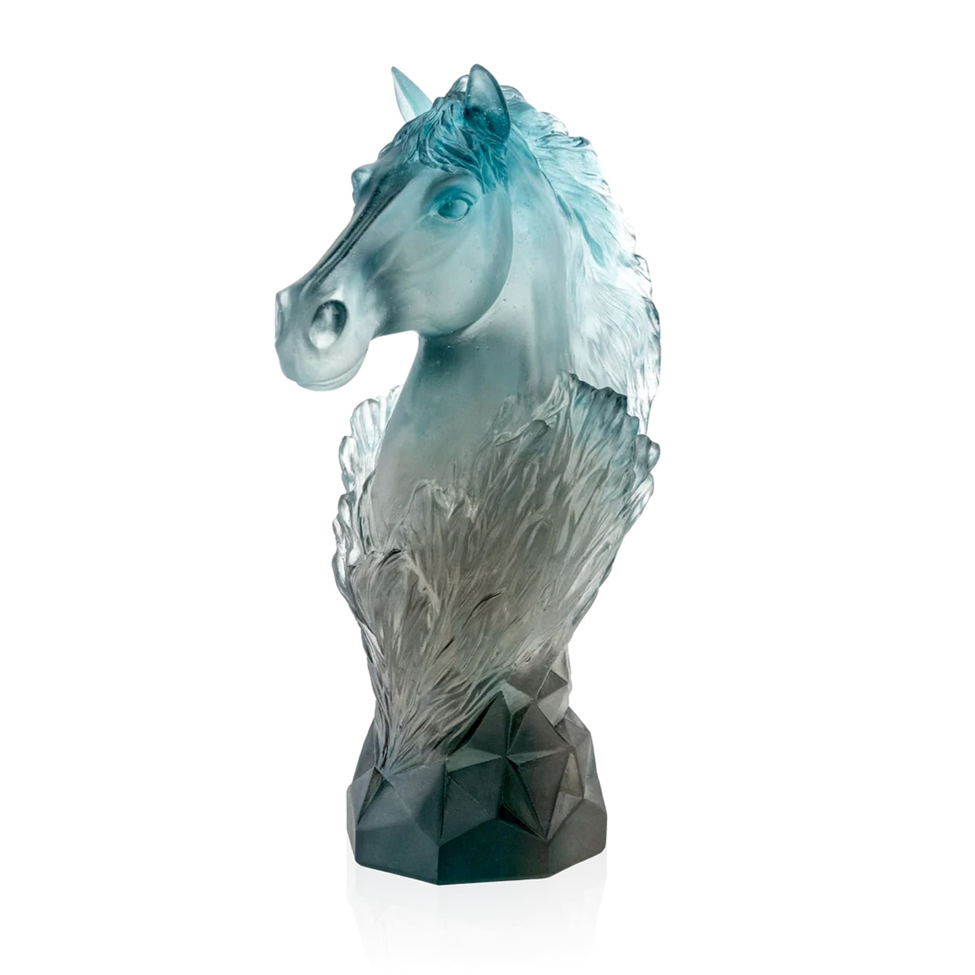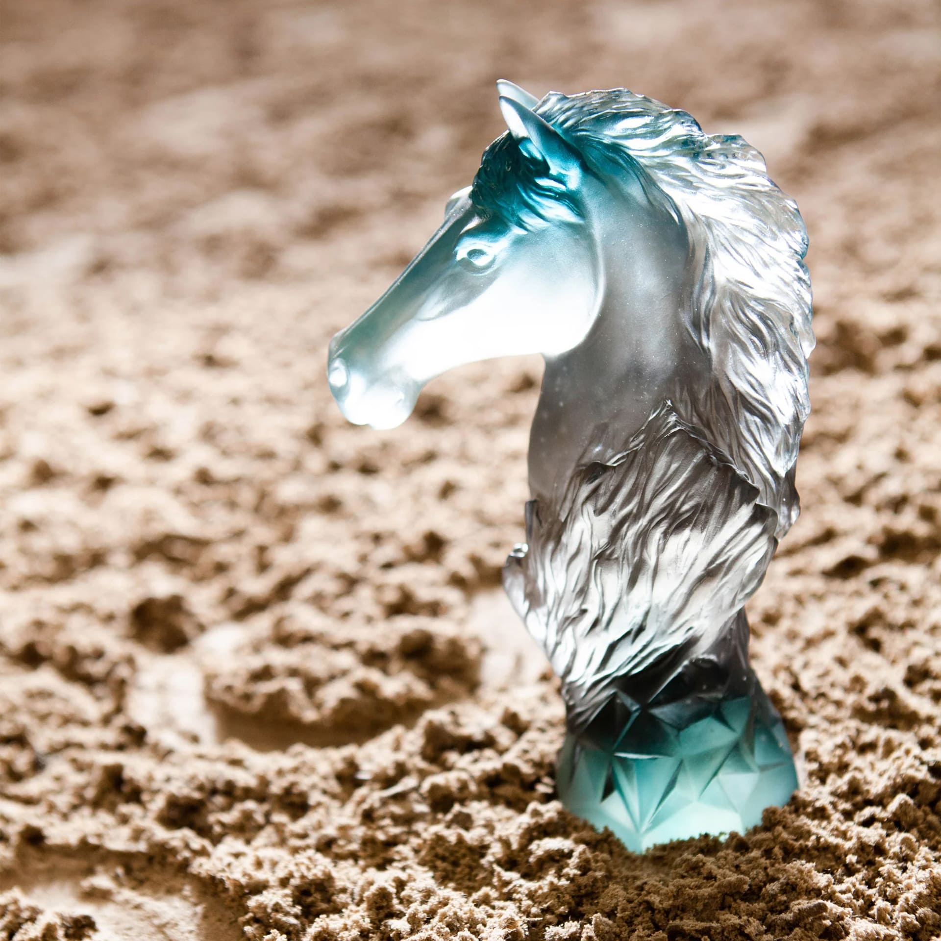Хрустальная скульптура Daum “Шахматный Конь Cavalcade”, Сине-Серый (Лимитированная серия 250 шт.)